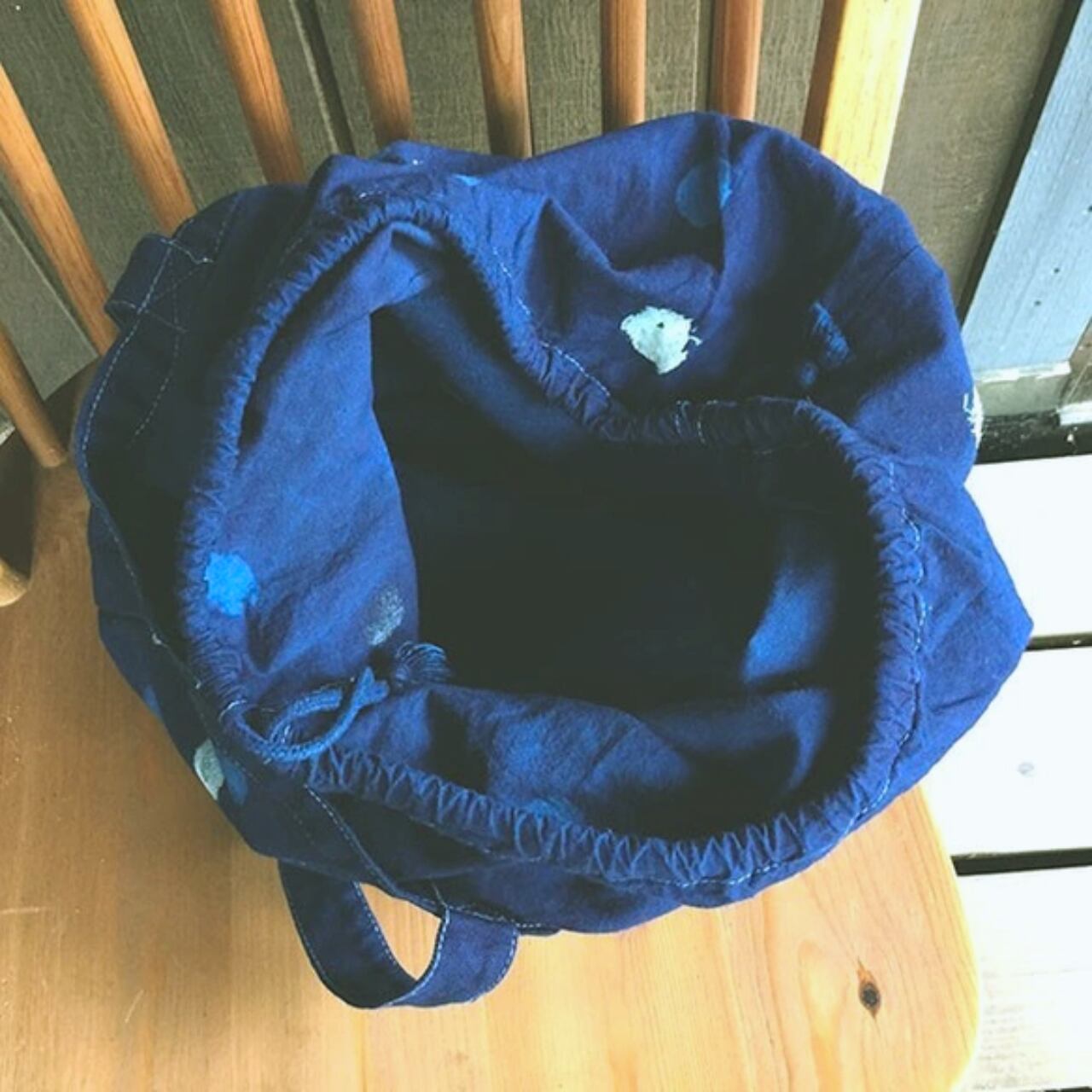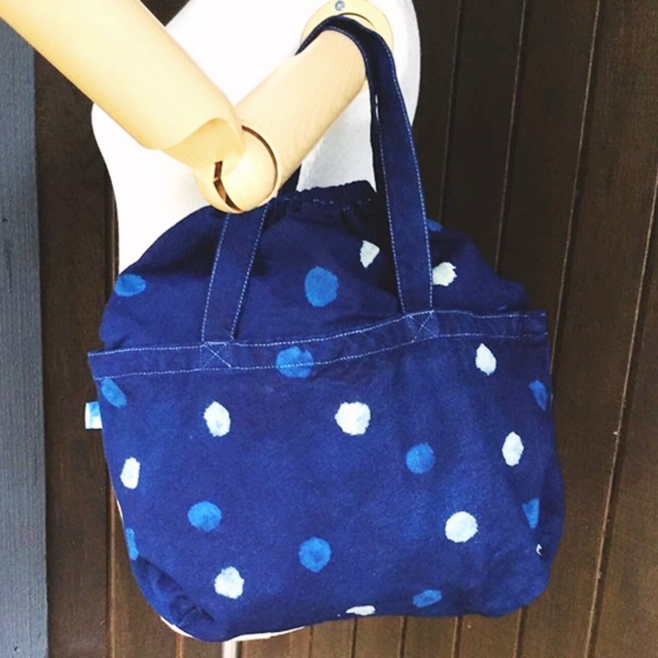 藍染水玉が可愛い巾着トートバッグ