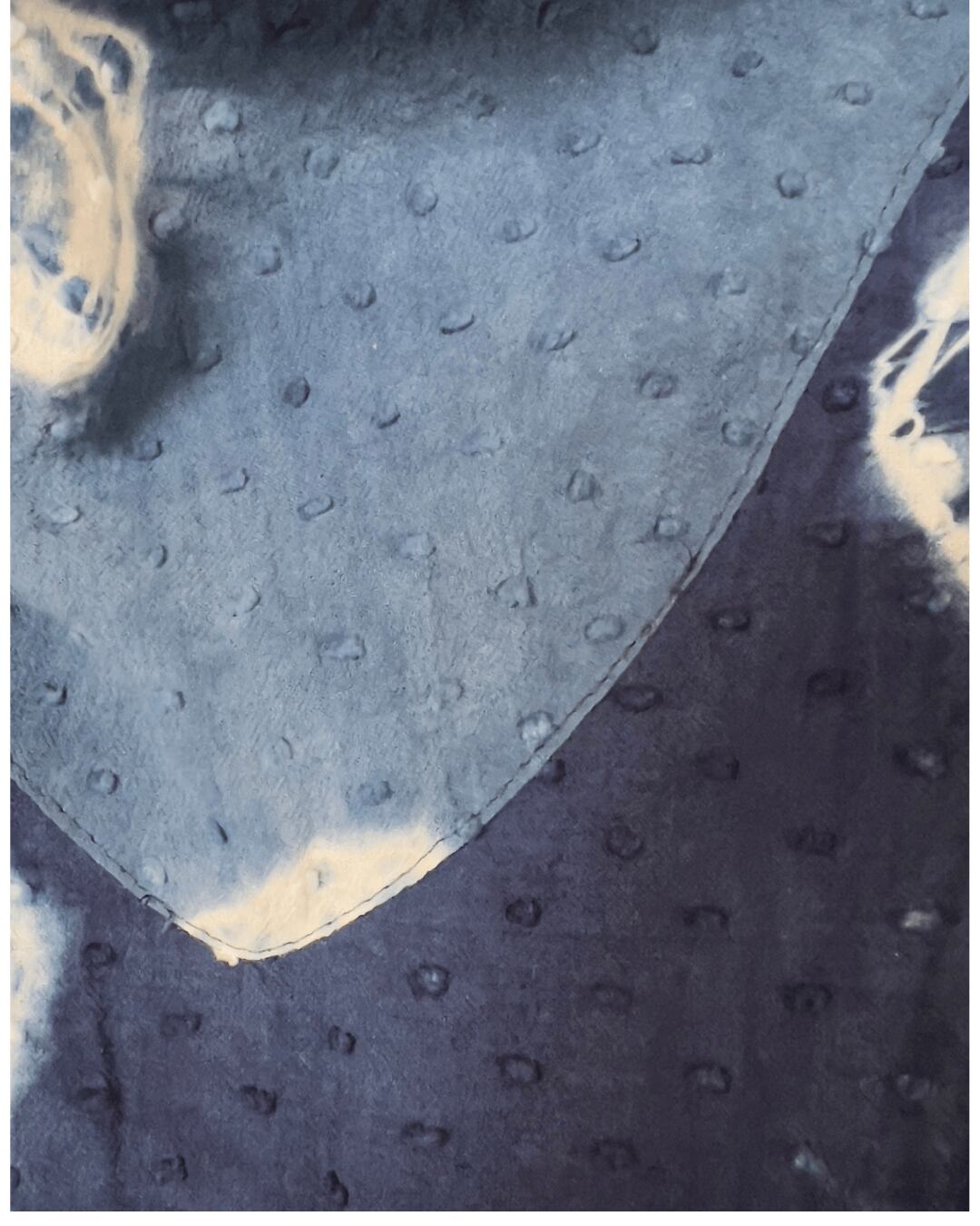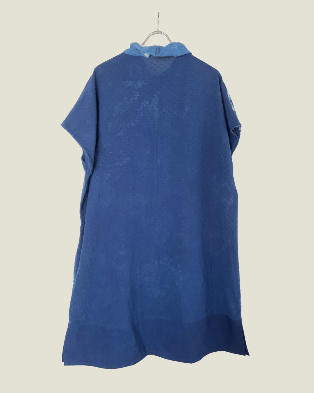 手染めによる美しい藍色は、一つ一つが異なるため、世界で一つだけの特別なワンピースとなっています。
